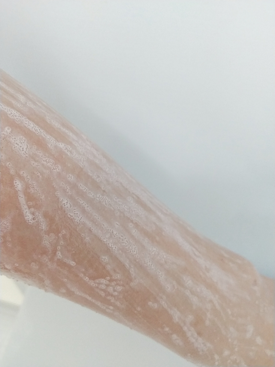 身体に塗りつけているうちにスクラブのザラザラはすぐに溶けてしまうのが普通だと思っていましたが